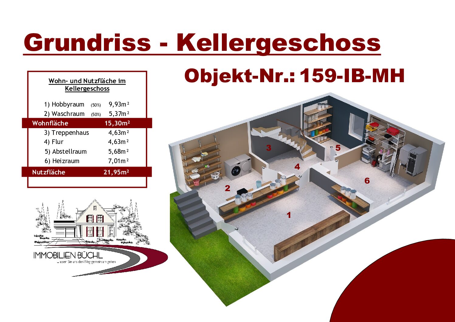 – Hobbyraum gefliest, mit Außentür, Fenster mit Lichtschacht, PV-Anlagentechnik u. Stromzähler, beheizt